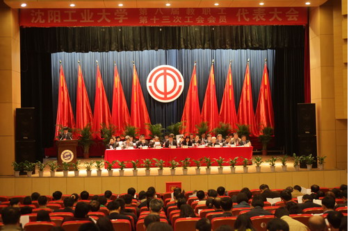 2016年4月24日下午,沈阳工业大学第八届教代会暨第十三次工会会员代表大会在工大会堂隆重召开。会议听取并审议通过了校长张铁岩所作的《学校工作报告》;听取并审议通过了校党委副书记李英民所作的《教代会、工会工作报告》;听取并审议通过了《关于学校“十三五”教育事业发展规划的决议(草案)》。选举产生了第八届教代会执委会暨第十三届工会委员会委员和第十三届工会经费审查委员会委员。